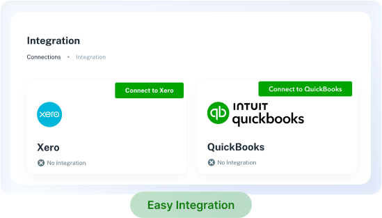 - Integration to Xero and QuickBooks