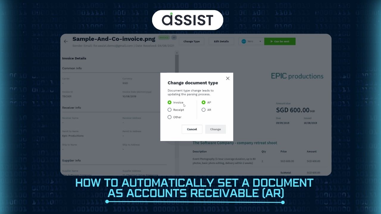 When your registered “Company Name” in ASSIST and “Supplier Name” in the invoice exactly matches, ASSIST will classify as AR.